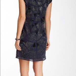 Crew neck - Short sleeves - Allover sequins - Lined - Approx. 35" length - Imported
