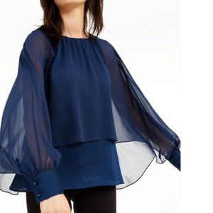 Trina Turk brings ethereal vibes by way of this sheer chiffon top featuring blouson sleeves and a textured underlay.
