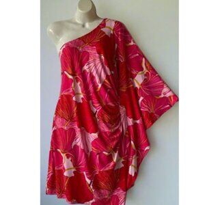 Trina Turk Mini Dress 12 Pink One Shoulder Floral Ruched Draped Bodycon
