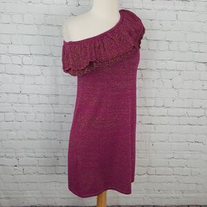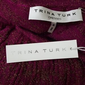 Trina Turk One Shoulder Mayreau Ruffled Purple Gold Metallic Dress Merino sz S NEW NWT