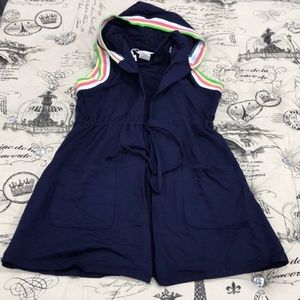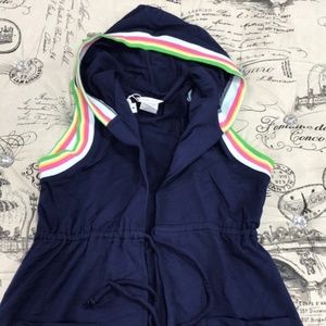 Colorful trims detail this beach-ready hoodie cover-up dress.