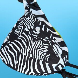 Trina Turk Tanzania Zebra Print Bikini Size 12 Black White Neon Green Emo Scene
