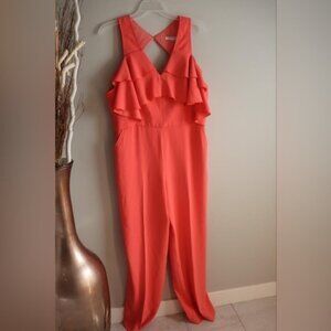 Trina Turk Women’s Coral Crepe Josephine Cold-Shoulder Ruffle Jumpsuit.