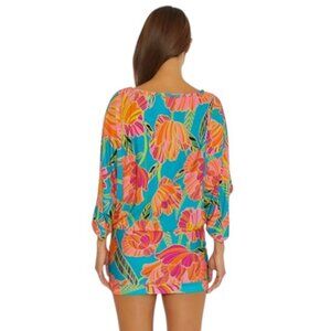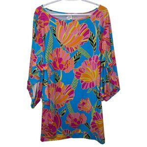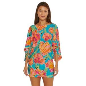 Trina Turk blue multi floral poppy tunic swim cover-up dress size XL