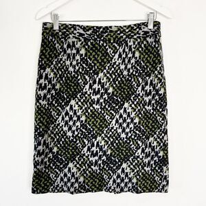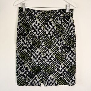 Trina Turk Gray and Green Leopard Print Plaid Pencil Skirt