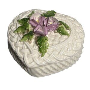Trinket Box Heart Shaped Floral Lid 3D Purple Pansy 3.5" Intricate Details