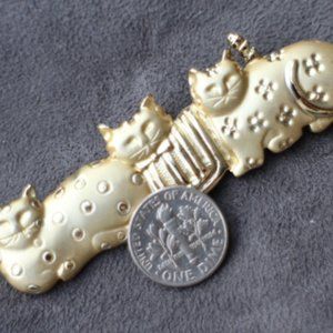 Trio Gold Cats Brooch AJC Pewter Cat Family