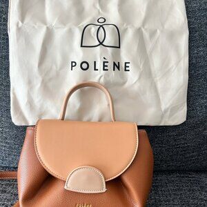 Brand new, Polene Numero Un Nano Trio Camel D-U-P-E handbag, shoulder bag, or crossbody bag. Made of PU leather. Adjustable, removable strap, 52” in length.