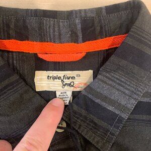 Triple Five Soul Men's Medium heavy cotton button down shirt in a dark striped