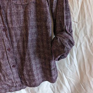 Details: Women's purple and white cross hatch long sleeve button up shirt.