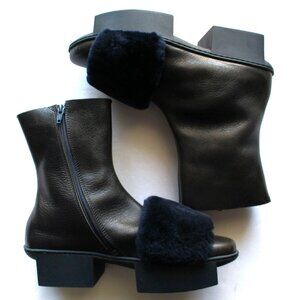 Trippen Sofa F Ankle Boot / Size 40 / US 9 / Black Navy Avant-Garde Fur Platform