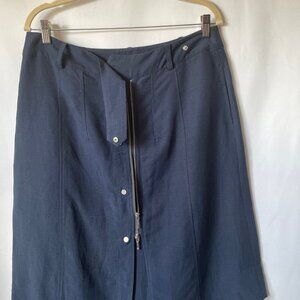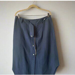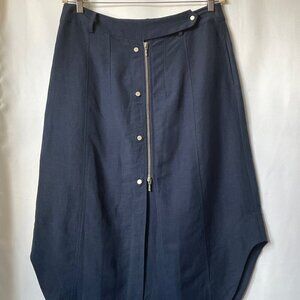 Tristan A-Line Midi Skirt 12 Blue Tencel Linen Button Full Zip Asymmetric Hem