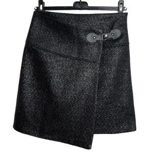 Tristan Asymmetrical Black Skirt with Buckled Detail - Size XS