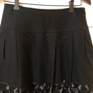 Pre owned. Excellent condition. A line skirt. Side zipper. Beautiful ribbon detail along the bottom of skirt front and back.