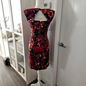Made in Canada! Tristan pencil-style floral dress in navy/bold floral pattern. Has slight stretch. Size 1 (XS)