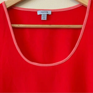 Tristan lightweight flowy red & pink sleeveless tunic top, size small. Please see manufacturer size chart. In very good condition, laundered and ready to wear.