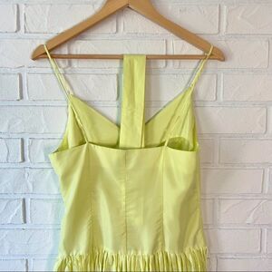 Tristan & Iseut Acid Green Silk Blend Drop Waist Plisse Mini Dress 4