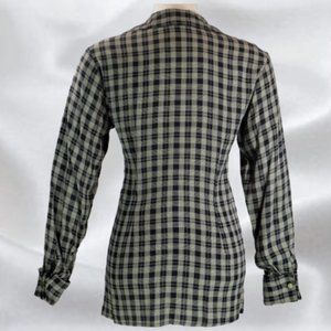 This made in Canada Tristan & Iseut Blue Checked Shirt in Size Small is in excellent condition with no flaws. Measurements in photos - note measurements taken flat and unstretched. Waist, Hip and armpit to armpit (chest) is then doubled.