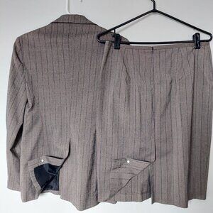 Tristan & Iseut Brown Pinstripe Skirt Blazer Suit Set, Size S/10