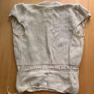 Size S, one small imperfection at the back where the knit hole is slightly bigger (see photo).