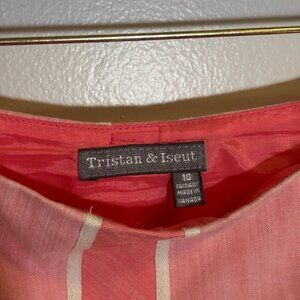Gorgeous pink and white skirt by Tristan & Iseut. Women's size 10. Fully lined. Side zip closure. Lots of material gives it a lot of swing and flare. Super cute for spring!