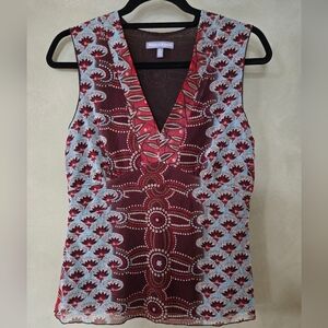 Tristan & Iseut | Red and Blue V-Neck Fitted Tank Top, Size L (Made Small)