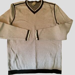 Tristan Mens Black/White Chevron Pattern Soft V-neck Cozy Knit Sweater-Sz-XL