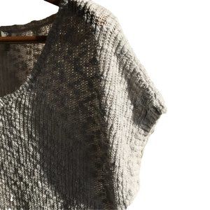Style Sleeveless Pullover Sweater with one front pocket V-neck Loose bouclé knit Open Waves Long Tunic Length Ribbed neckline & arm opening
