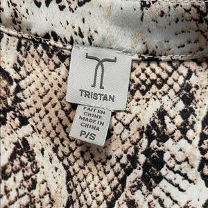 Elegant blouse with snake pattern. Features a sleek V-neck. Ideal for any occasion.