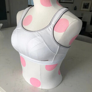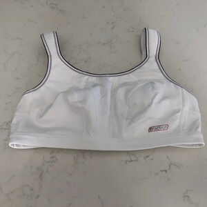 Triumph Triaction Activewear Nylon + Spandex Sports Bra Top in White w Black & Grey Trim NWOT