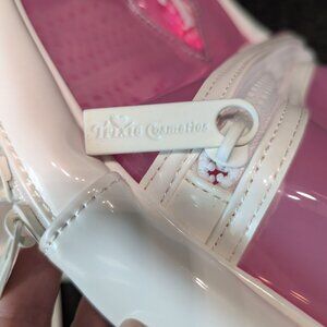 Special features: Official Trixie Mattel merchandise, transparent pink jelly construction, white trim, heart logo detail, adjustable straps.