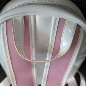 Size: Mini backpack Condition: Excellent used condition. No noted rips or holes. Only minor flaws include one very small stain on the white strap near the buckle and some very slight scuffing on the jelly material on the front bottom pocket.