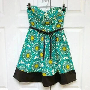 Trixxi Strapless Fit & Flare Dress Sweetheart Neck Green Black Floral Size XXS