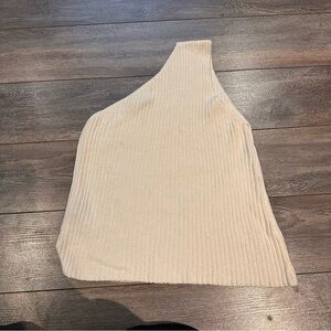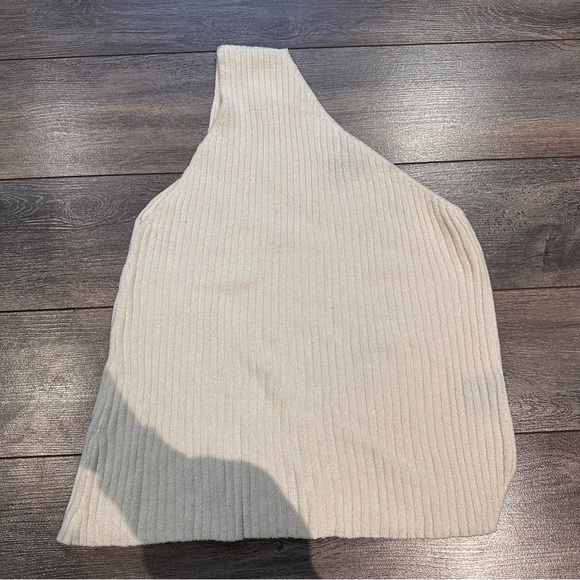 Trois Cream Ribbed One Shoulder Top