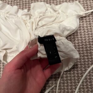 Super cute napkin style backless top from trios the label in white/cream, in great condition. Size 2 fits a small or x small
