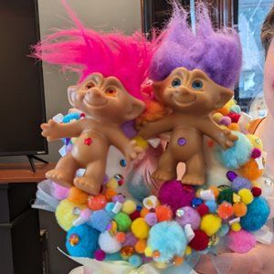Wreath made with original troll dolls.