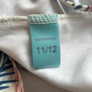 This stylish kids swim one piece features a vibrant tropical design with blue and pink accents. Perfect for fun days at the beach or pool.