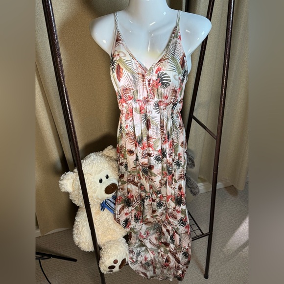 Embrace summer vibes with this tropical print mini dress. Perfect for any casual outing.