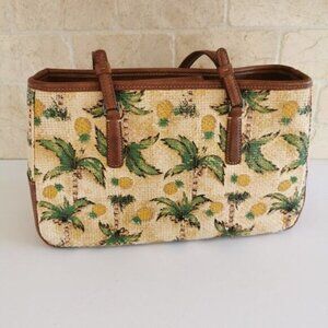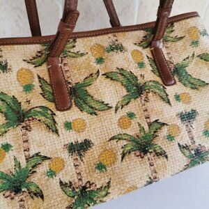Tropical Woven Purse Liz Claiborne Palm Tree Pineapple Handbag Bag