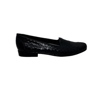 Trotters Shoes Womens Size 8SS Liz Navy Basketweave Leather Flats Super Slim