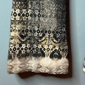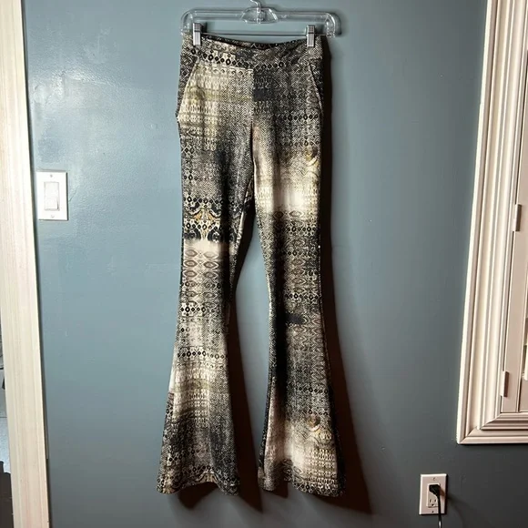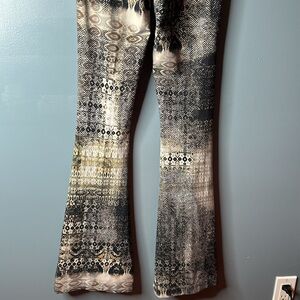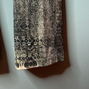 Pull on. High waisted. Skinny leg with flare. Tones of black/brown/ivory and cream. Size small. 10” rise. 33” inseam. 13” across waist.