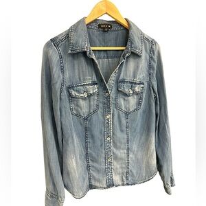 Trouve Medium excellent condition Lyocell blouse (denim distressed) beautiful and flattering from a beautiful brand