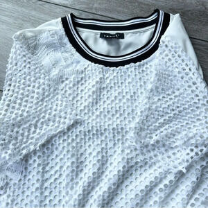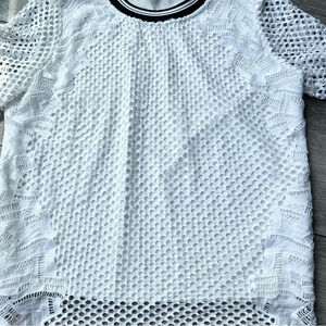 Trouve White White Mesh CROCHET OVERLAY Blouse