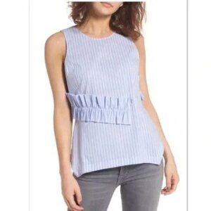 Trouve blue stripes asymmetrical ruffles trapeze blue sleeveless tank top Small
