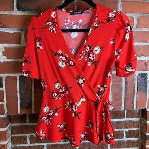 🔥Trovaré Floral Faux Wrap V Neck Top XS