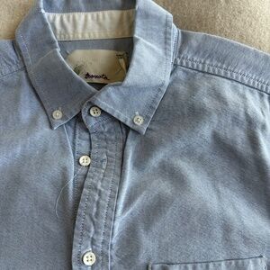 Trovata provides a modern take on a classic design here, updating the Oxford cloth button down with contrast stitching details and slight collar distressing for a vintage feel. The shirt is in a classic Oxford blue, perfect under a blazer or a sweater with jeans. It's a size small slim fit.