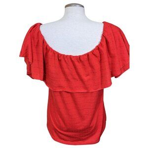 Tru Self Womens Small Top Tassel Trim on Deep Orange Eyelet On or Off Shoulder