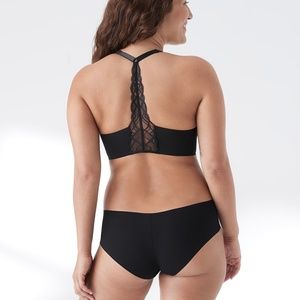 The True Body Triangle Lace Racerback feels like wearing nothing at all (our favorite feeling). It looks like lingerie and layers beautifully with soft lace at the back.
