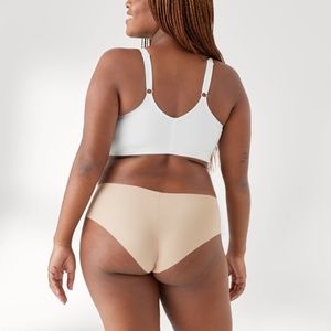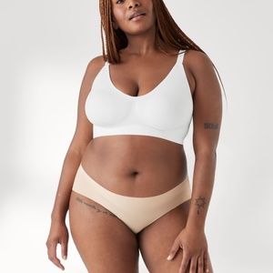 Wire-free style pulls over with ease. Removable pads included