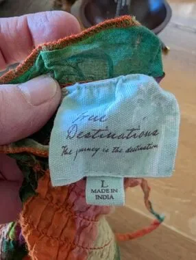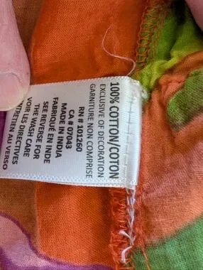 100% cotton tropical print tiered sundress. No pockets, elasticized bodice.